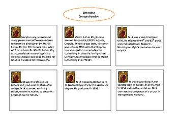 This freebie has two options. One option is to use the QR code activity which takes a little bit of time to prepare and is more fit for in-person sessions. Your other option is to use the MLK information cards which are a total of 6, one-page passages that can be used to work on answering “wh” questions, summarizing and recalling details.