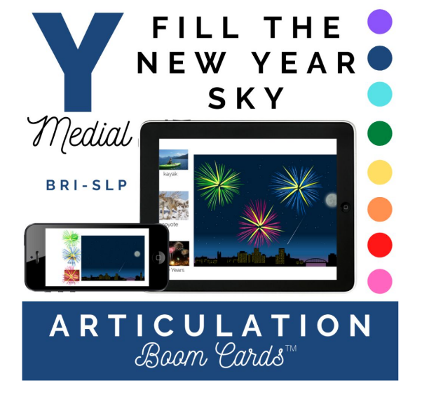 Grab this freebie to work on /y/ in words or sentences. The words are multisyllabic so you could also use them to target 2-3 syllable words. It’s a quick activity but can be made longer by asking older students to formulate sentences about the words. You can use a carrier phrase like “The firework was on top of …” and have the student fill the rest by saying the phrase “the ______.” I plan on also using it with students who are working on categories and attributes. After uncovering the target picture, I’ll have them name the category and/or list attributes.