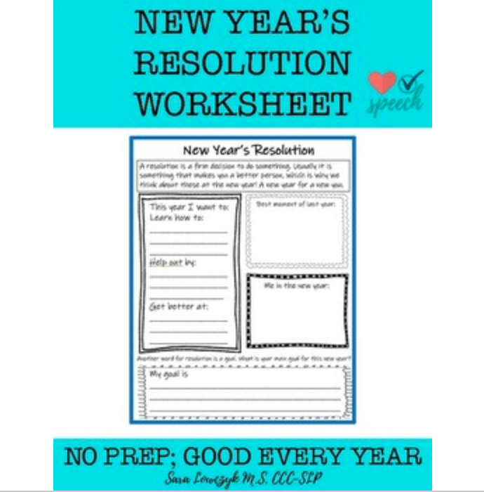 This one-page worksheet is a quick way to work on vocabulary (e.g. resolution & goal). It’s also great for working on sequencing. I had my older students complete the three sentences and then we sequenced steps to achieve each goal. This allowed us to practice words like first, second, and after. I also used it to work on formulating complex sentences using conjunctions. The kids enjoyed drawing “best moment of last year.” I paired the worksheet with a couple of YouTube videos.