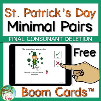If you’re working on final consonant deletion, here’s a St. Patrick’s Day freebie that targets this goal with minimal pairs. The visuals are great to help students understand the difference between the words when you leave a final sound out.
