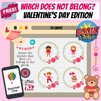 This valentine’s theme Boomcard is great for working on category of exclusion or negation. There are 10 task cards with 4 pictures on each card. You can also use this to target answering “why” questions (i.e. Why doesn’t it belong). You can also work on formulating sentences by having the student formulate a complete sentence when providing an answer. The following categories are included: people, vehicles, sweets, jewelry, animals, body parts, bread, places, toys and flowers.